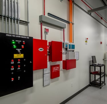 Detección integral de incendios, paneles de alarma y sistemas de supresión con monitoreo 24/7.